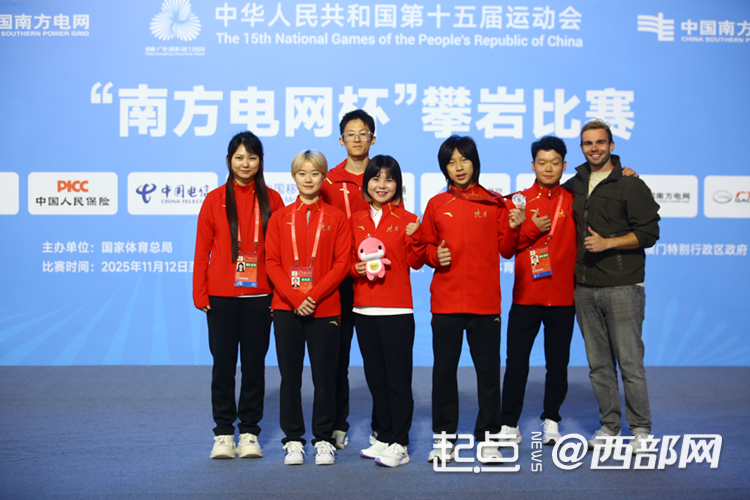 11月13日,第十五届全国运动会攀岩比赛男、女难度决赛在广州大学城体育中心极限运动中心举行。陕西选手穆泽润夺得男子难度项目银牌,骆知鹭夺得女子难度项目银牌。