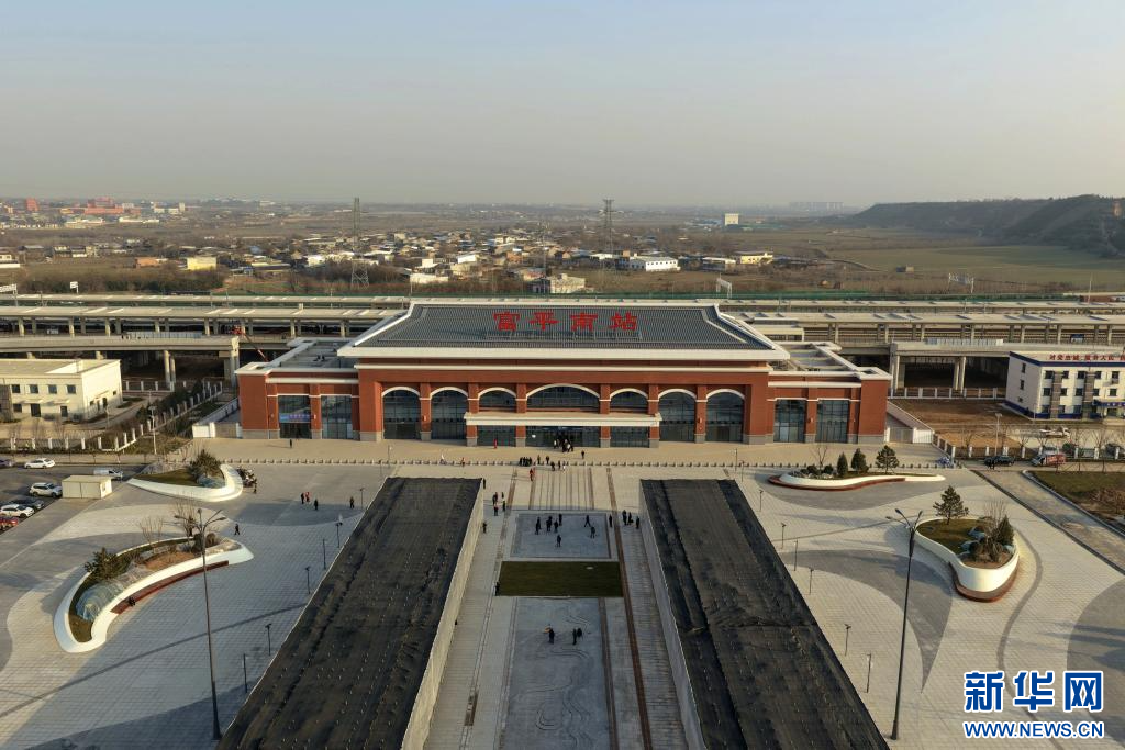 12月24日拍摄的西延高铁富平南站(无人机照片)。