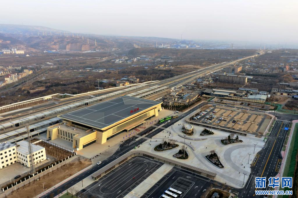 12月24日拍摄的西延高铁铜川站(无人机照片)。