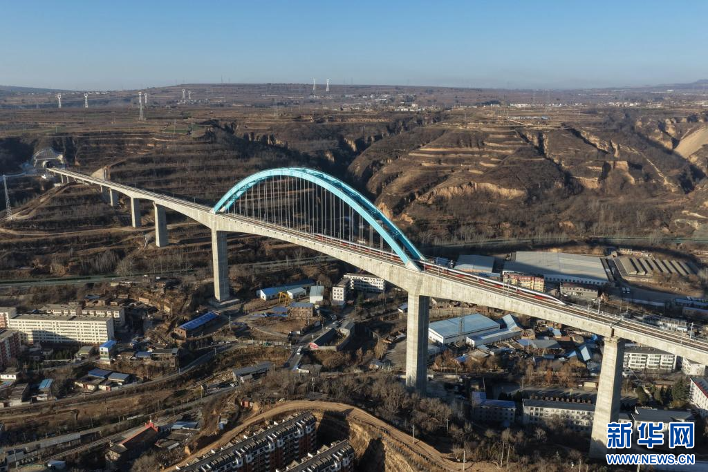 西安至延安高速铁路关键控制性工程王家河特大桥位于陕西省铜川市王益区,是西延高铁全线跨度最大、高度最高的桥梁。桥梁全长1066米,其主跨采用248米连续刚构加拱组合结构,桥面距沟底高达105米,是国内高速铁路无砟轨道桥梁中同类型结构的跨度与高度双项纪录保持者,对保障西延高铁全线贯通具有决定性意义。