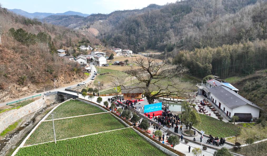 1月23日,象棋爱好者在平利县西河镇磨沟村参加“乡村棋王争霸赛”(无人机照片)。