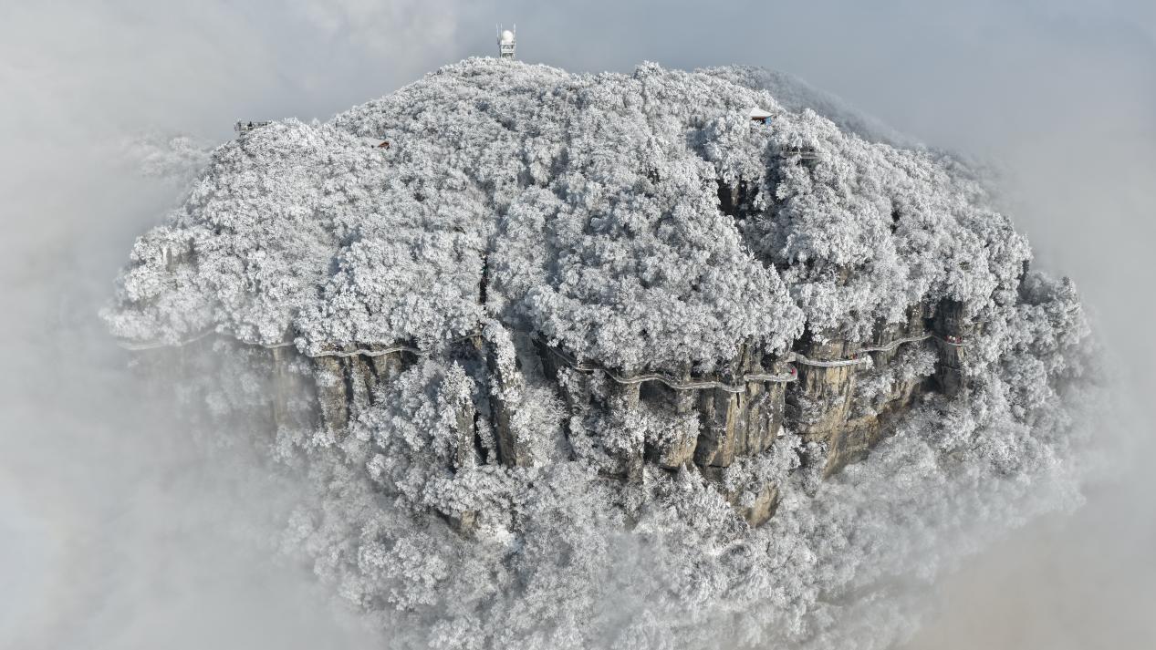 1月23日,整座山巅被雾凇覆盖,云海如浪铺展于脚下,冬日仙境吸引游客观光打卡。(宋晓丽 摄)pagebreak