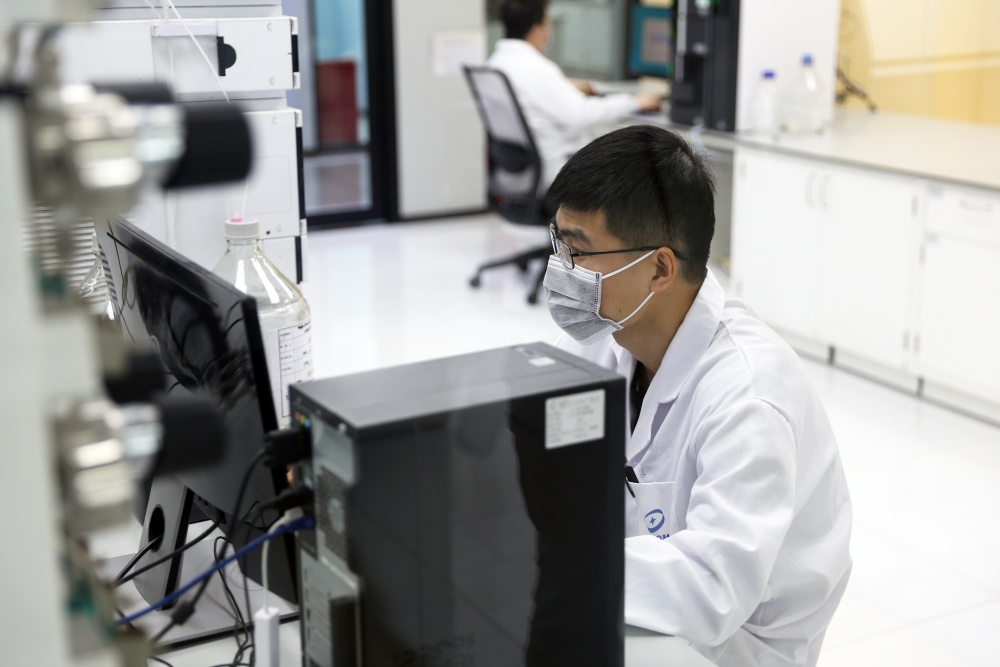 西安蓝晓科技新材料股份有限公司的技术人员正在进行应用实验。新华网 王智超摄