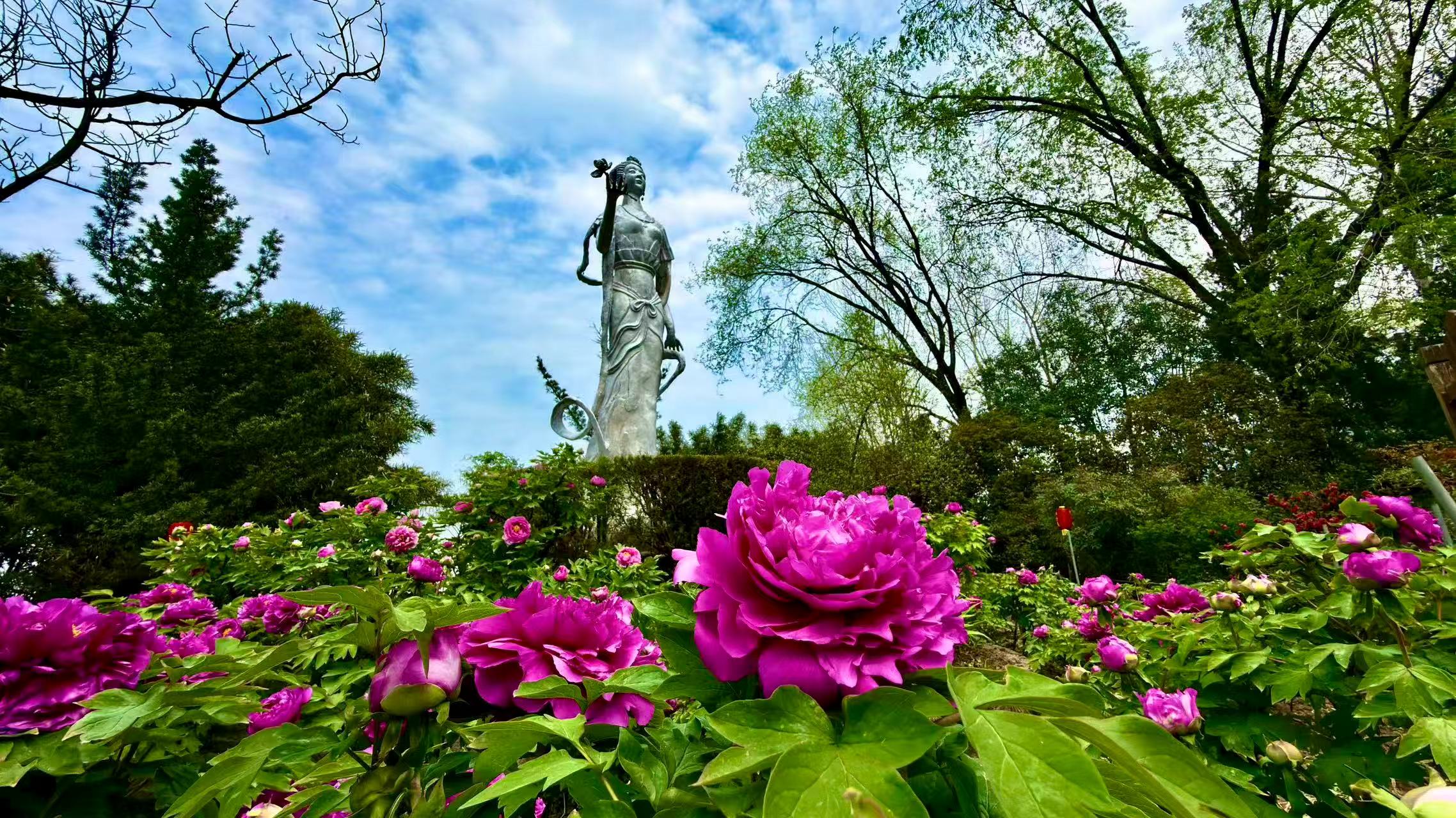 满园的牡丹争奇斗艳,吸引游客前来赏花游玩。