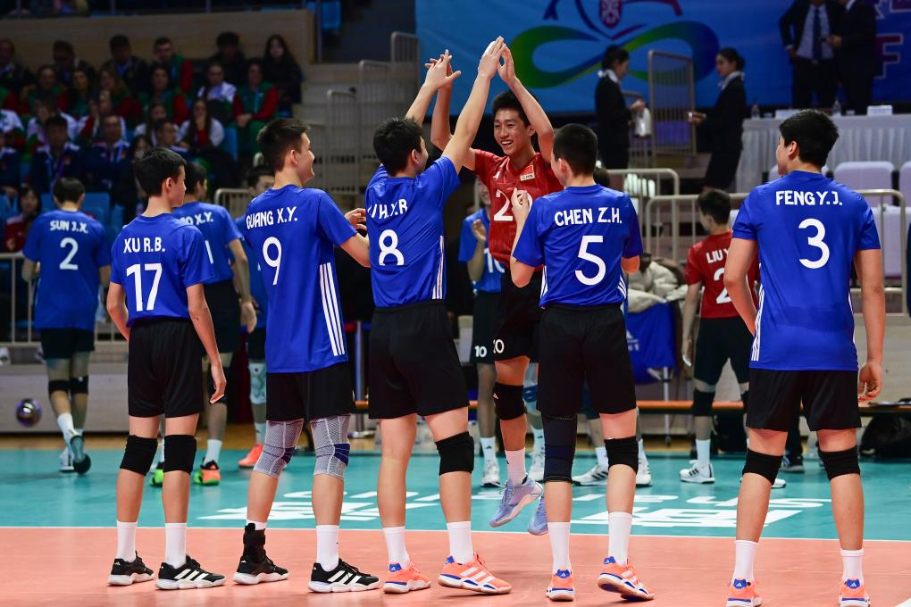 新华社照片,商洛(陕西),2025年12月5日 12月5日,中国男子一队球员乐奖励(上)在赛前入场时与队友互动。