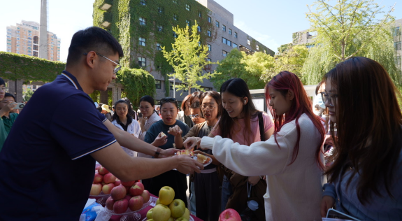 " 18日,在延安苹果走进中央美术学院品牌推荐活动中,中央美术学院师生们品苹果、晓历史、明渊源,感知延安“小苹果托起大产业”的时代内涵。"
